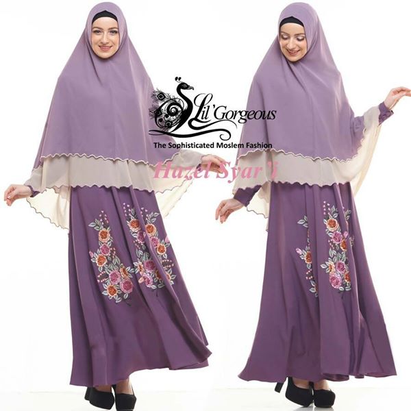 * Khimar cerutty 2 layers tumpuk beda warna, hias bordir lengkung ditepinya