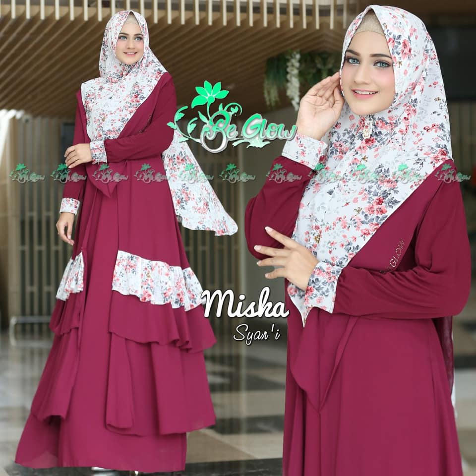 Khimar 2 leyer dgn bhn ceruty armany polos di padu dgn motif bunga pet tipis antem dgn sworosky beglow di bagian khimar